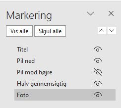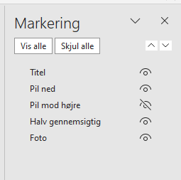 Ved at klikke på titlerne kan du markere dit indhold og du kan vælge hvilke elementer der skal kunne ses på dit billed.